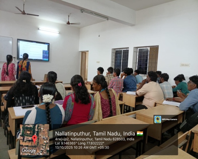 A guest lecture by Mr. Muthu Sundaram on SDLC models was delivered by an industry expert. The session included practical demonstrations of software development lifecycle stages, integrating real-world insights into theoretical learning. Students gained a deeper understanding of software engineering practices.