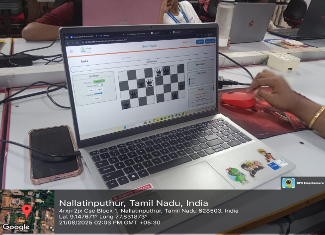 In this subject, the optimization technique Local beam search was taught with the help of Vlabs simulation software. The students were given demonstration with Vlabs simulation, where N-Queens problem was analyzed for better optimization results. The students performed analysis and learnt how the beam size and the initial random position converges faster to the better optimal solution by the simulation.